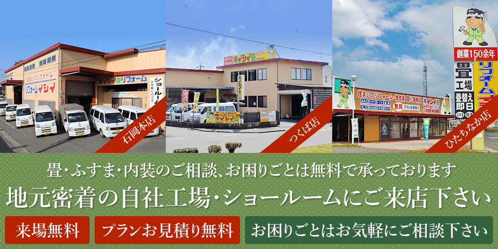 茨城県内では、いち早く畳製造の合理化と機械化を実現し、品質と技術とサービスにこだわり続けて参りました。