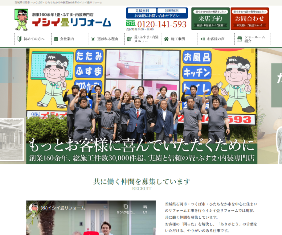 茨城県石岡市・つくば市・ひたちなか市の創業160余年、イシイ畳リフォームWEBサイトをリニューアルオープンしました。