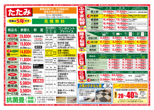 HOME>イシイ畳リフォーム情報通信>畳メニューチラシ