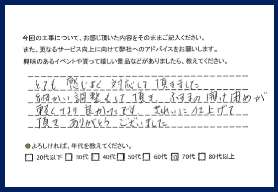 ふすまの開け閉めが軽くなりよかったです土浦市 2022年09月20日 (Tue) 襖畳 土浦市 前の記事 一覧 次の記事 ご質問・ご相談にプロの畳アドバイザーがお答え致します! 0120-141-593 受付時間 9:00~18:00(定休:日・祝)まずはお気軽にお問い合わせください!